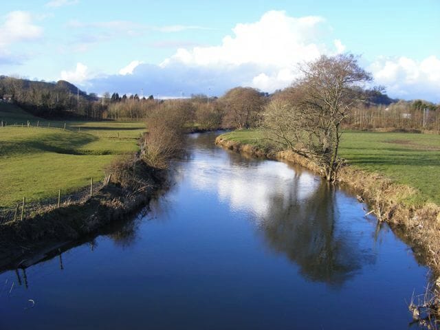Afon Gwili (Looking North) View of the Afon (River) Gwili looking north from the Abergwili road bridge. The bridge carrying the A40(T) over the Gwili is at the top of the picture