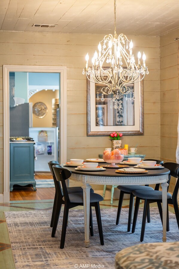 Welcome to our charming 1930's historic home that exudes the elegance reminiscent of the curator's daughter, Clare. Enjoy the high ceilings, and a delightful mix of grays, turquoises, greens, and peacock blues throughout the home. The front formal living room boast timeless charm, while the family/TV room at the back offers a cozy space. Enjoy the brick-paved terrace and shade trees in the backyard! Experience cottage allure with exceptional details in this unique getaway.