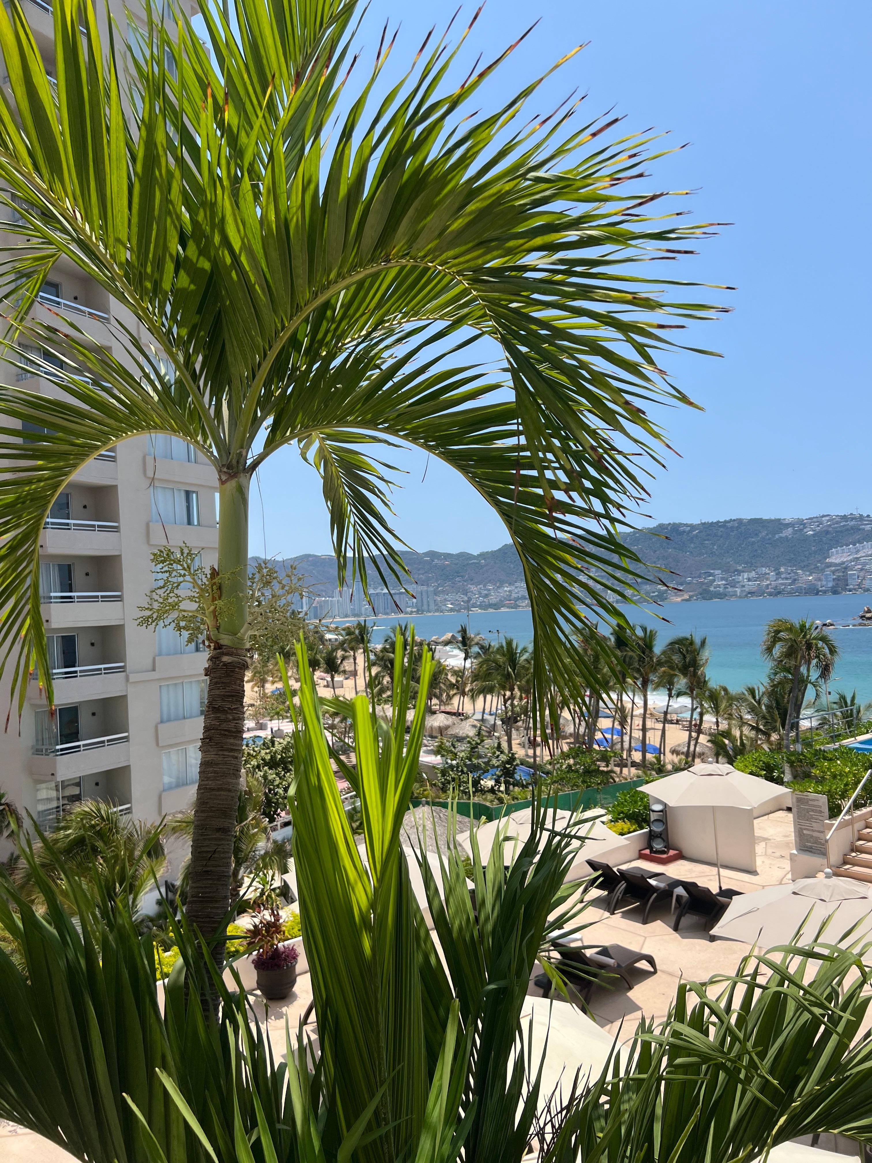 Muchas palapas al frente las cuales tapan la vista al mar. El Hotel y el servicio todo bien.