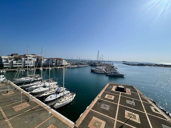 Advantages of this beachfront rental: You can easily park your car within the residence, as a private parking space is included. The apartment is located on Île des Pêcheurs, offering an unobstructed view of the harbor entrance and the sea.