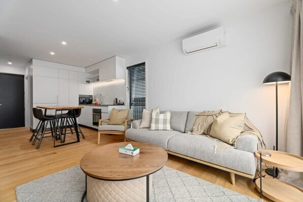 A perfect all season apartment for al fresco dining on the deck or relaxing in front of the fire on a snowy winters day. Fibre Wi-fi is complimentary at this property.