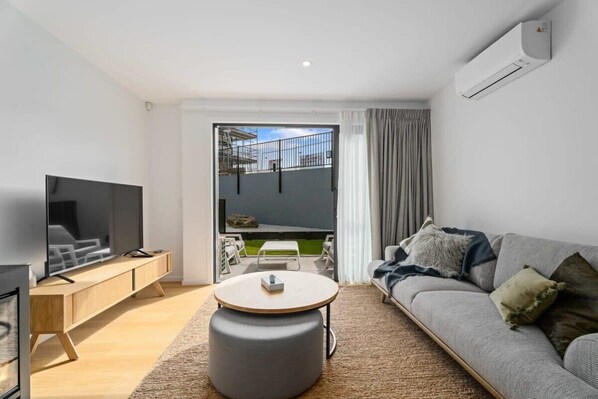 A perfect all season apartment for al fresco dining on the deck or relaxing in front of the fire on a snowy winters day. Fibre Wi-fi is complimentary at this property.