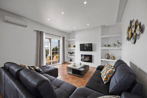 Aircondition splitter ny villa som ligger i åssiden ovenfor Vale de Parra, med nydelig utsikt til kysten, på en rolig landevei med restauranter og barer på bunnen av kjørefelt.
