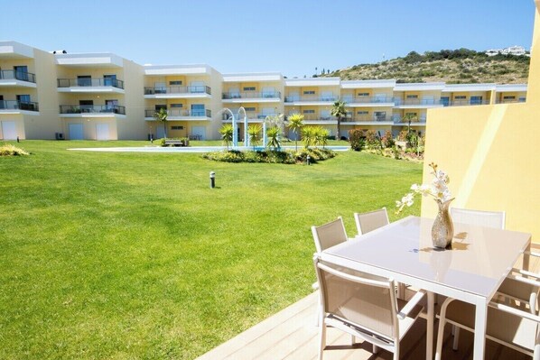 This is the best, newest and most exquisite apartment complex that the luxurious area of Albufeira Marina offers. Built modern, fully equipped with cutting-edge technology. All apartments have a lift, the entrance gates are automatic. There is a large garden where you can find common areas of barbecue, a volleyball court on the hill, a football field, a playground for children, a pool area and an outdoor gymnasium for you keep in shape!