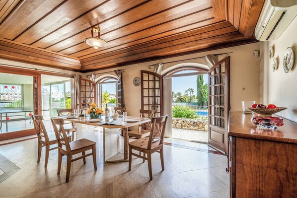Treat yourself to a fantastic Algarve getaway at Villa Fontainha. Ideal for families, this charming villa will be your gateway to the vibrant resort town of Albufeira, where everything you need is just a hop, skip, and a jump away. Sounds inviting, doesn’t it? Villa holidays are all about poolside dips, sun-soaked lounging, and long alfresco lunches and that’s exactly what’s waiting for you at Villa Fontainha. Douse yourself in Factor 50, pop your shades on, and get ready for hours of relaxation under the sizzling Portuguese sun. Surrounded by your nearest and dearest, make the most of your private pool and plunge into its refreshing waters, splash around, and enjoy some friendly poolside games before hunger calls you back inside. Why not chef it up and cook up a storm on the BBQ? It’s a guaranteed crowd-pleaser when those mid-afternoon cravings kick in. Make sure to serve it up alfresco, so you won’t miss a minute of the warm breezes and poolside views! Traditionally charming and rustic on the inside, venture in and prepare to be wowed. Truly feeling like a home away from home, settle down on plush furnishings for early morning coffee chats or escape the midday heat with a fun game (or two) of table tennis. For those laid-back nights in, gather the clan around the dining table to enjoy an array of delicious treats, all prepared in your fully equipped kitchen - it’s never been easier! As the sun sets and a blanket of stars takes its place, head upstairs to cosy covers and soft pillows for a rejuvenating night’s sleep. Just outside the heart of Albufeira, this characterful villa puts you in prime position for short drives to beach hopping excursions, tasty bites, and lively nights out. With so much to explore right on your doorstep, adventure is never far away from Villa Fontainha. Pets - not allowed Smoking - not allowed