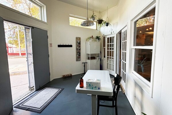 New & Improved!! New private yard & laundry!! Have it all with the location & a pet-friendly outdoor space. Half a mile from Central Avenue in Downtown Albuquerque, this apartment is the former storefront of the old bakery! It has a gorgeous tall entryway with a dedicated work space and plenty of room for bikes, snowboards, strollers & luggage. The location is just minutes from the Rio Grande, so bring your bikes, paddle boards & doggos for the best neighborhood in Burque!