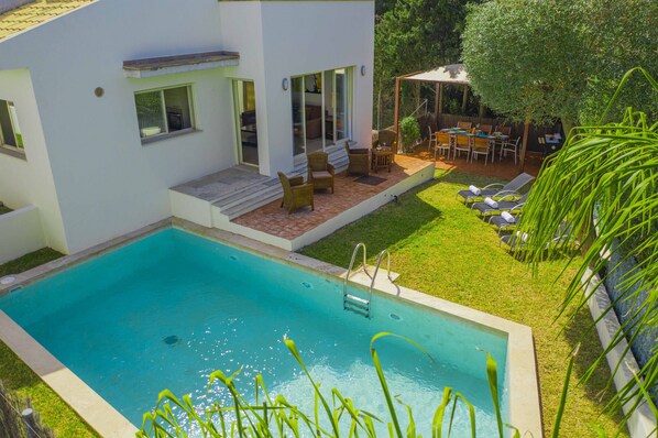 Villaen har 4 soverom, 2 bad, en stue / spisestue, et fullt utstyrt kjøkken, en øvre terrasse utstyrt med utemøbler og utsikt over havet, en uteservering og et privat basseng med solsenger.