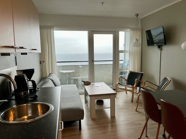 Leilighet, 1 soverom, balkong, sjøutsikt