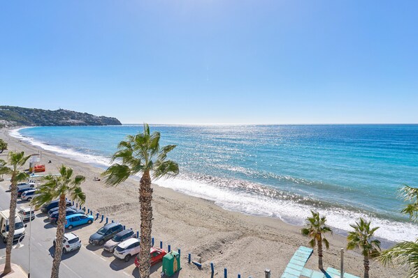Step out onto the shared open terrace to take in 360-degree panoramic views of the mountains and bay, or relax on your private balcony. Situated right on the beachfront, you'll have immediate access to the sea and a variety of water and sports activities just outside your door.