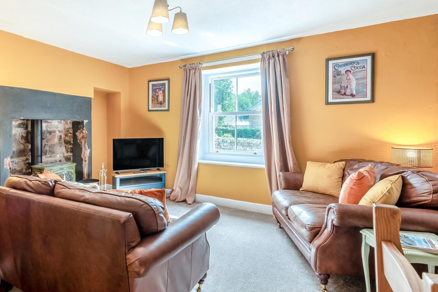 Living area – Comfortable seating, Log burner, 50” Smart TV with Sky TV, board games and a selection of DVDs