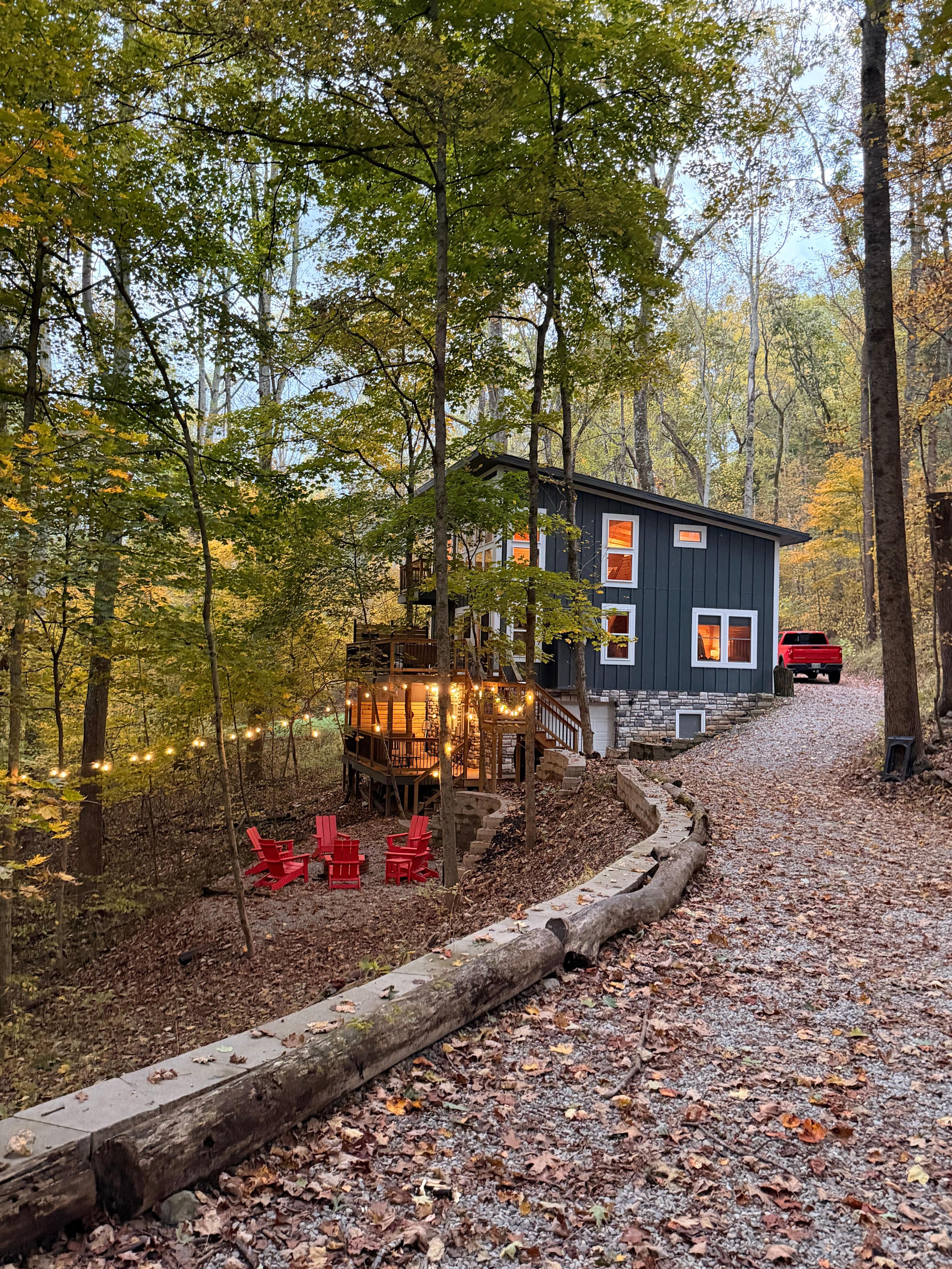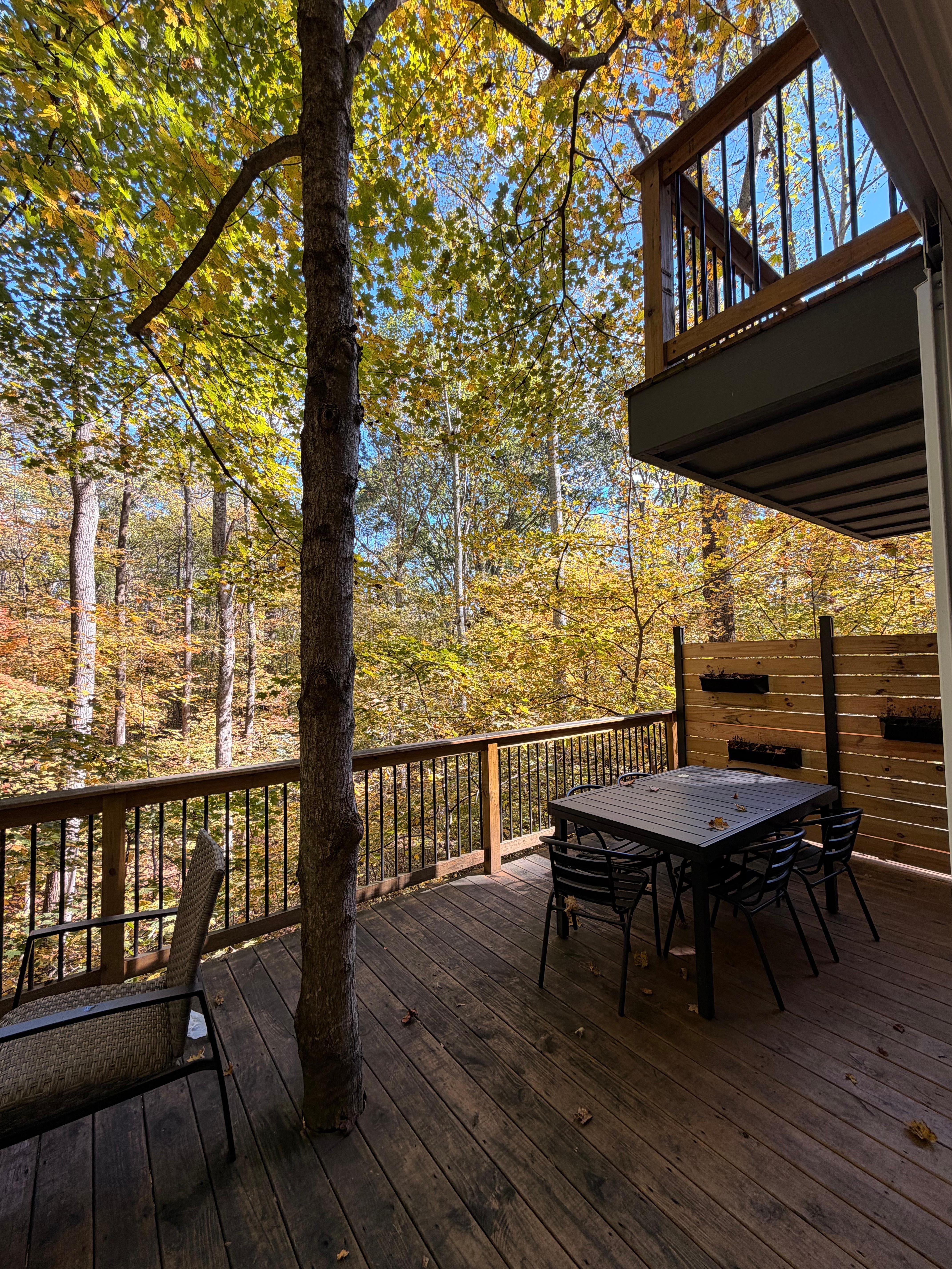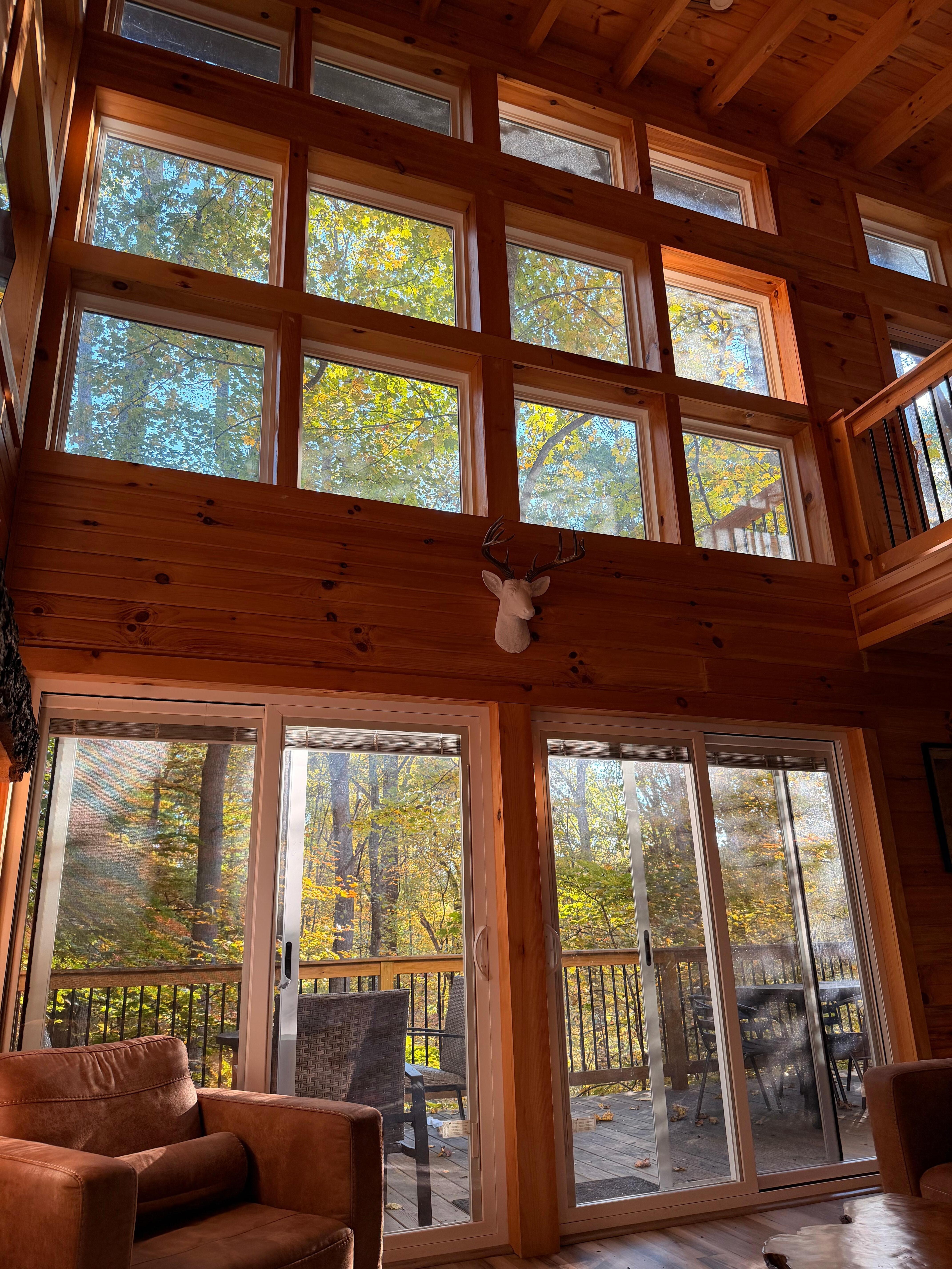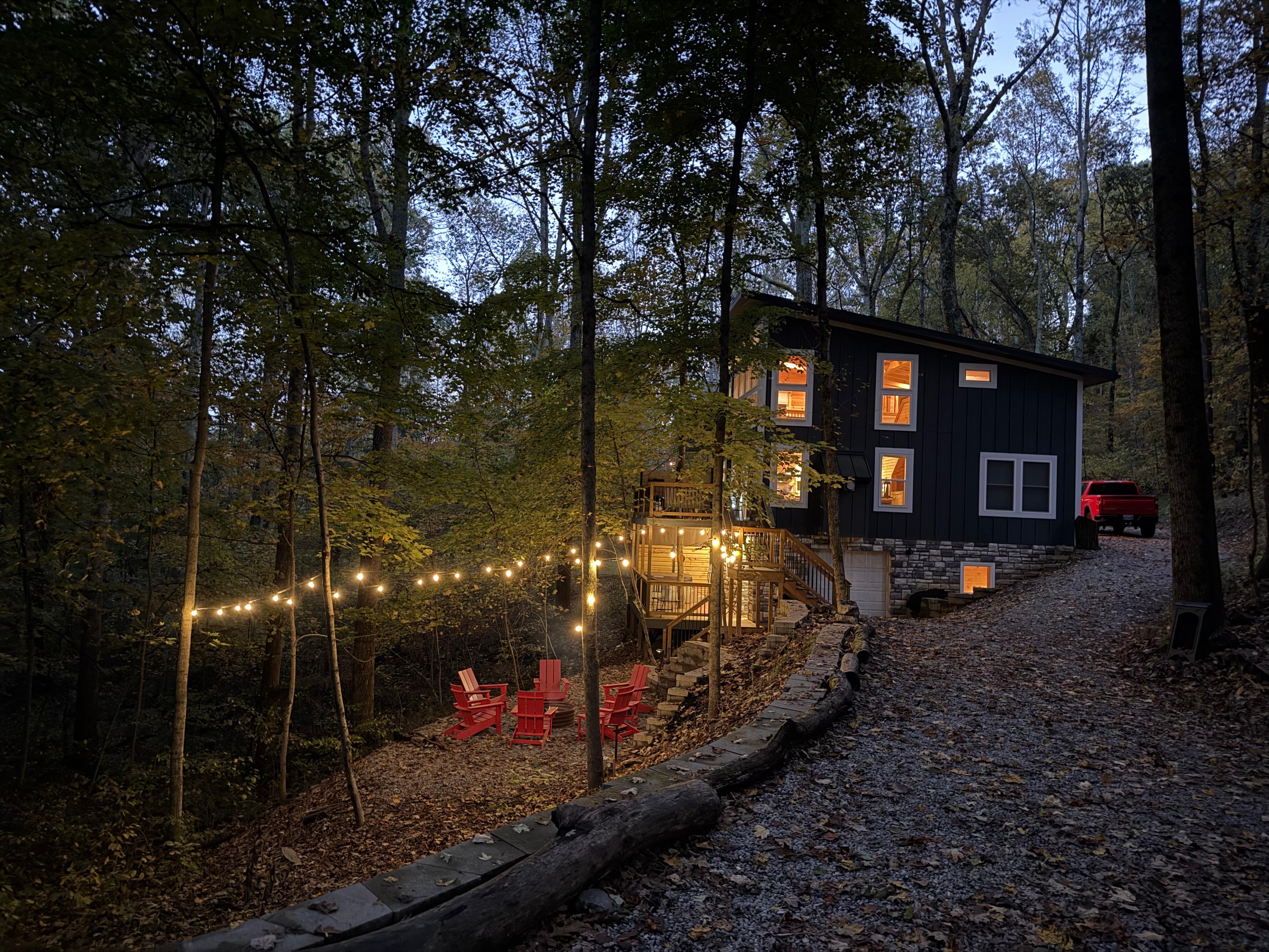 The place was beautiful! Our family loved it. Big windows for a gorgeous private view. 3 full bathrooms. Great quality fixtures and appliances. Perfect for a 4 and 8 yr old. We did movies upstairs, the twin bed in the basement were perfect, the places provided games and puzzles. They had everything we needed and more (we just had to run out and get laundry detergent and dishwasher pods). Reception is okay at the house. The private path behind the house was perfect to test out how the kids would handle other hiking destinations. The hot tub and sauna were clean and in great condition. We were glad to bring dry wood ourselves or we wouldn’t have been able to have a fire. The house had smores sticks. The only two downfalls were the cleaners seem to just have started when we arrived so we left for awhile and because of bad reception, missed the owners confirmation that it was ready and, we didn’t know there would be house pretty closely next to us. That would’ve been nice to know but, still very peaceful when other guests were there.