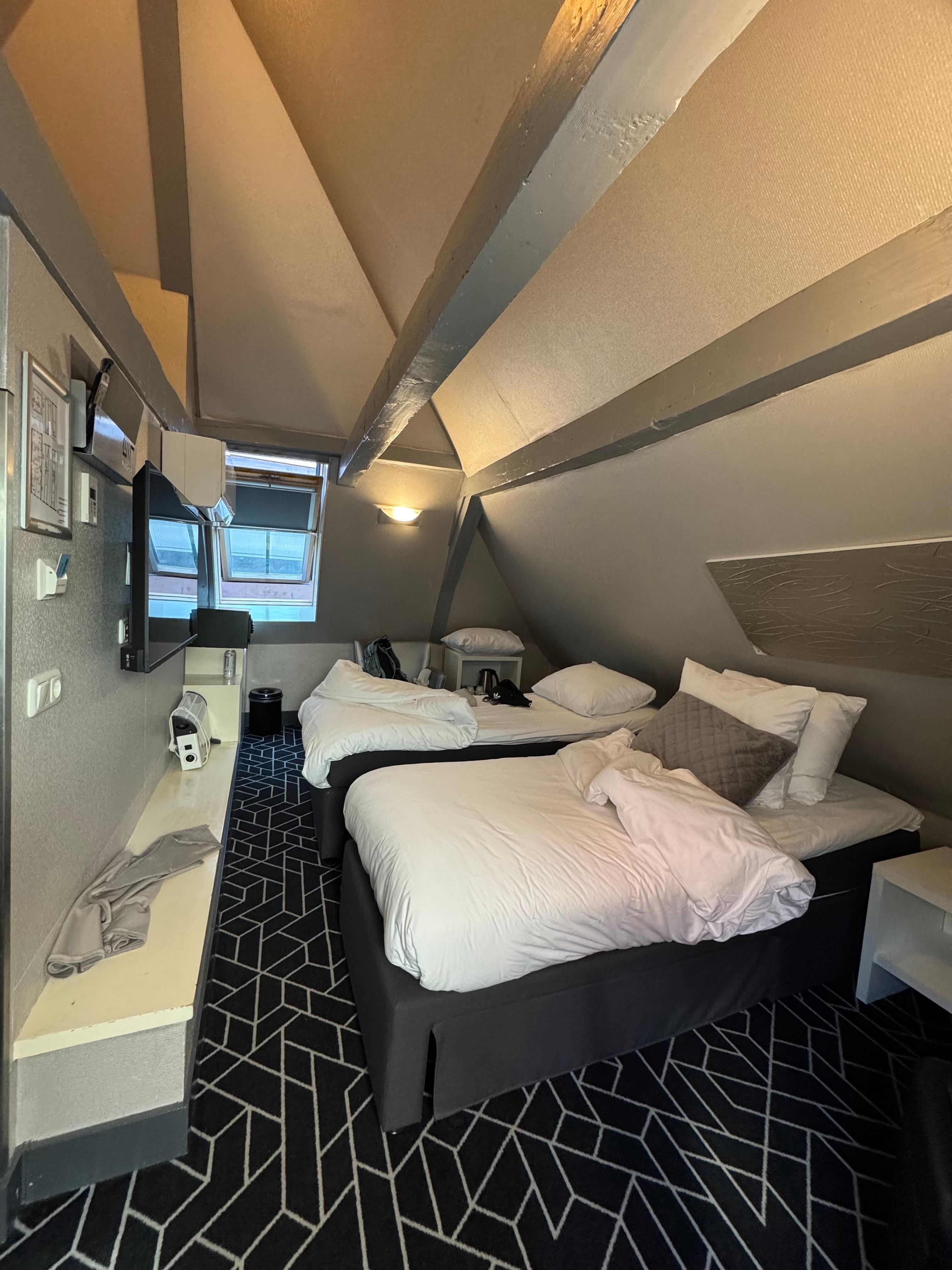 Perfect solo setup. The room was great, but the real draw is the building’s history and the canal view. It’s a convenient spot, everything from the nightlife to the train, bus, ferry station is right there. You’re in the middle of the Amsterdam buzz, but the room itself was a solid retreat. No complaints.