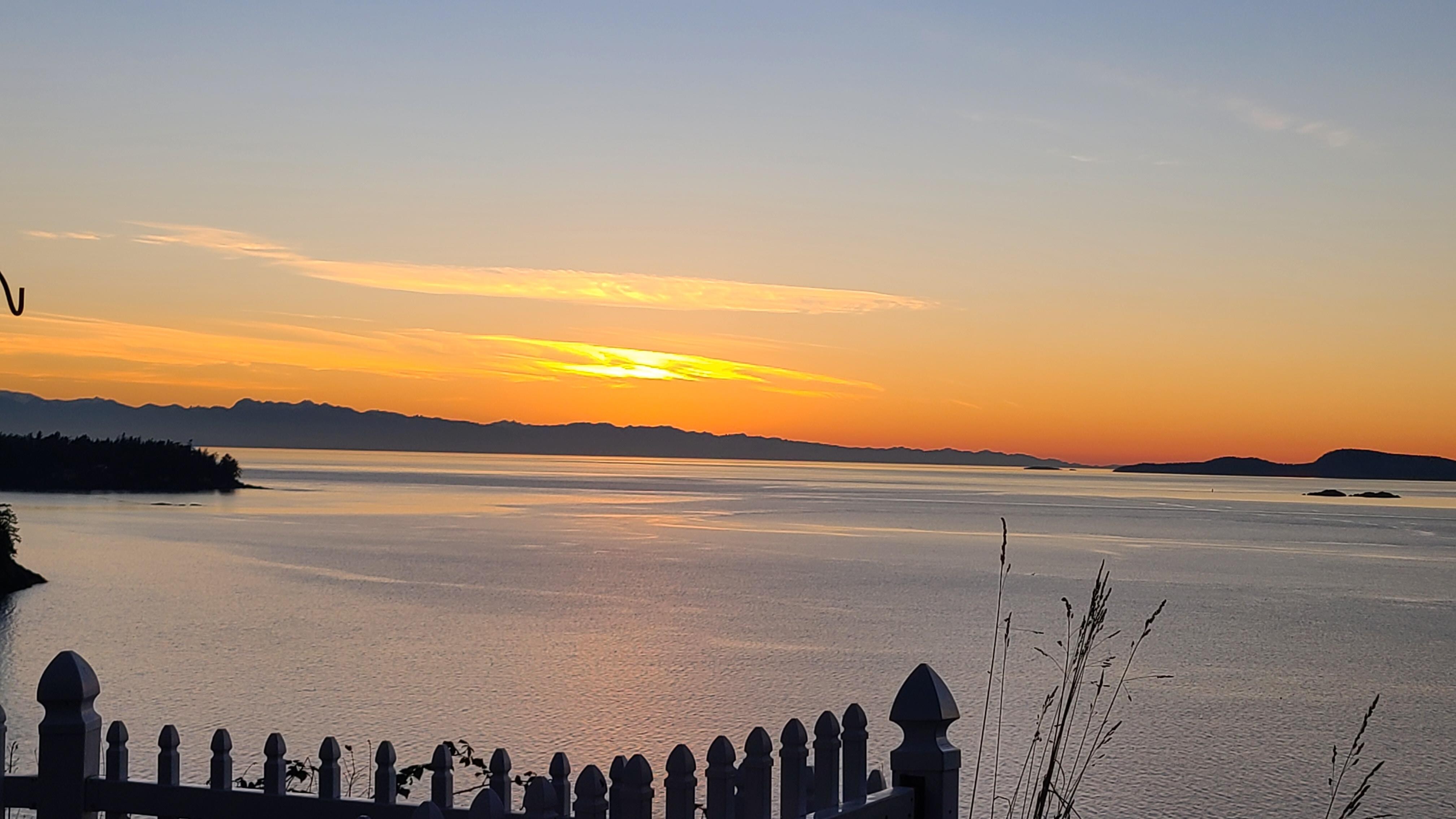 Spektakulær utsikt over sjøen over Alan, Burrows og Lopes Islands sammen med de olympiske fjellene er her du kan nyte i vår hytte ved sjøen. Liten gressplen og gårdsplass gir et nydelig sted å slappe av mens du nyter utsikt over hagen i tillegg til å feie uhindret utsikt over havet over 180 grader. Hvaler kan av og til sees fra hagen.