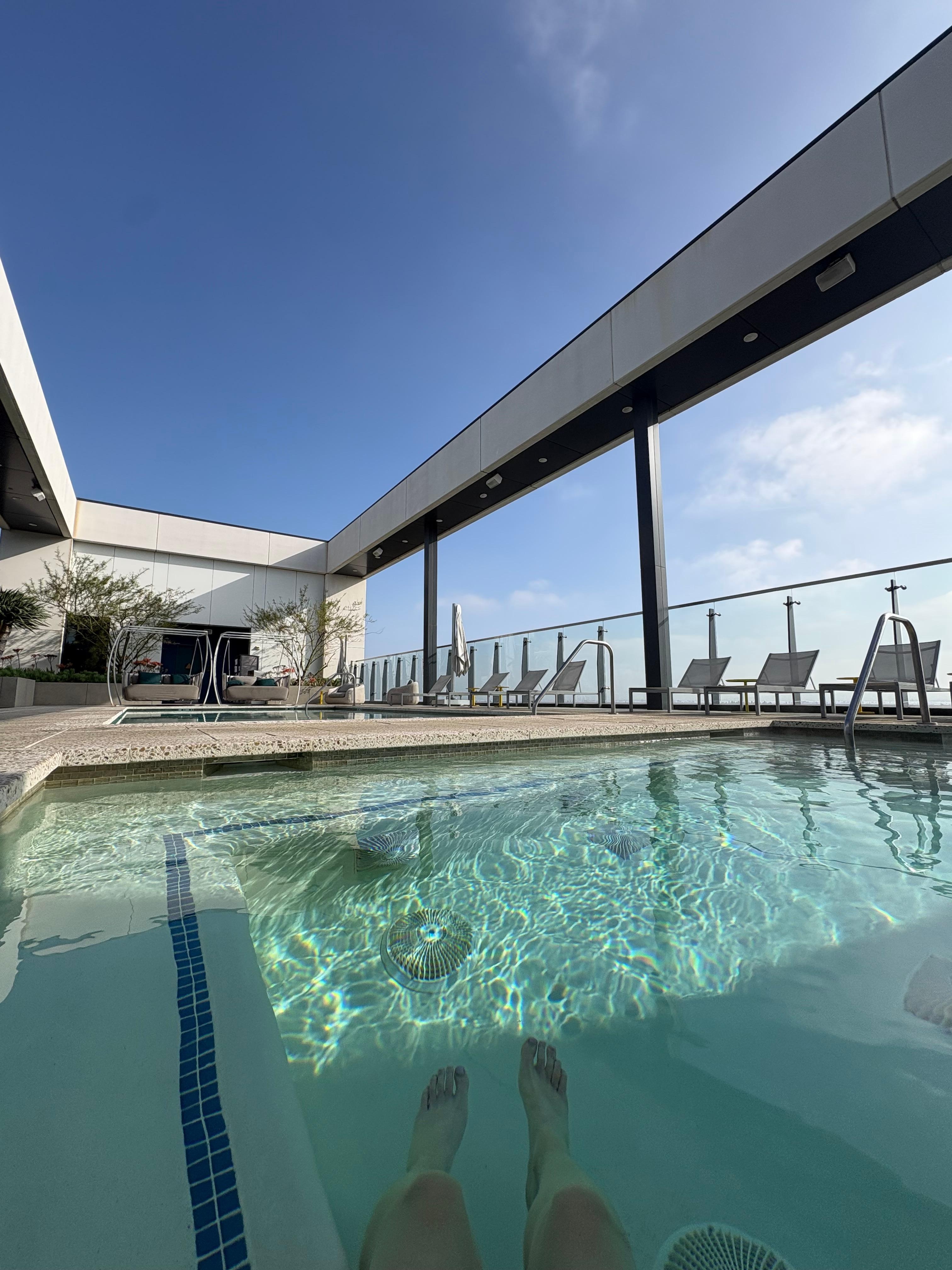 Loved the top floor pool and lounging area. The room was so spacious and relaxing, I would have liked to stay longer. Staff was kind and responsive.