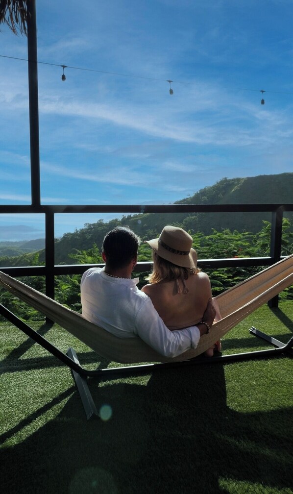 Reconnect in a romantic tropical igloo with a private heated pool, a bathtub inside the dome, and a hammock with breathtaking ocean and mountain views.
