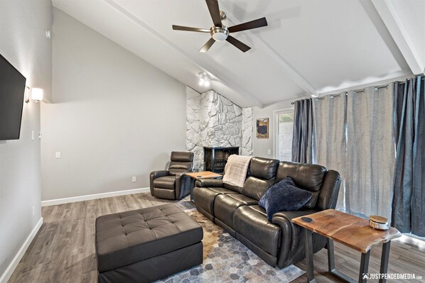 Unwind after a day of exploration, complete with plush seating and a flat-screen TV for entertainment. The fully equipped kitchen has stainless steel appliances and ample counter space, perfect for whipping up delicious meals with fresh local ingredients.
