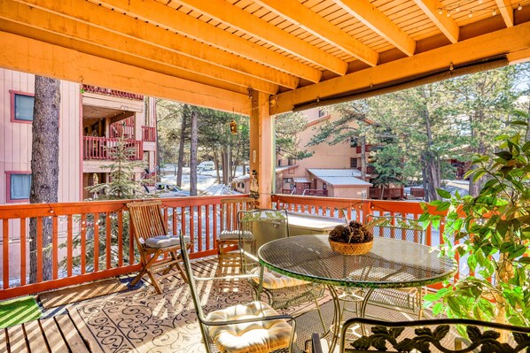 Mountain-view condo with a jetted tub, fireplace & W/D