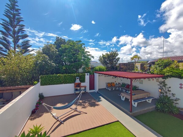 Det utendørs plass har en terrasse og uteplass. Begge er perfekt for soling, morsomme øyeblikk og avslappende utendørs måltider - inkludert kullgrill.
