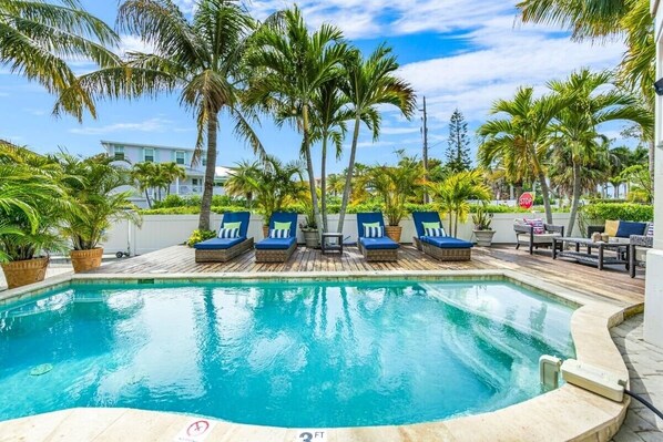Vacation in luxury at Paradise Point, an incredible custom home just across the street from the Gulf of Mexico. This five-bedroom, four-bathroom home boasts a private heated pool, a terrific location, and an outdoor area that is sure to be a hit with everyone in your group. Featuring spacious balconies on each of the levels with stunning views of the beaches and the island, a vacation at Paradise Point is sure to be the best one yet!