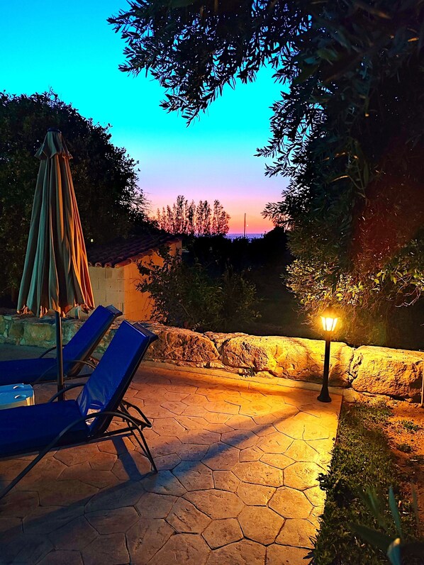 The villa is set in amongst fragrant orange groves & is secluded & private in its own grounds. We were lucky, the owner said we were able to pick fresh oranges daily. It is just a short walk to the beach & local tavernas & a short car drive to Polis. We hired a car to take us on trips to Kato Prygos & into the mountains on sight seeing tours & came across local tavernas.
