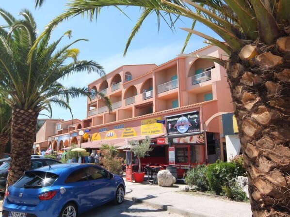 Residens "Le Central Beach", med 3 etasjer. I sentrum av Argelès Plage, i en sentrale, travelt posisjon, fra sjøen, 500 m fra stranden. Butikk, supermarked 100 m, kjøpesenter 5.5 km, restaurant 300 m, bar 400 m, område bare for gående 450 m, bussholdeplass 100 m, togstasjon "Argelès sur Mer" 4 km, sandstrand 500 m, dykkesenter 1.6 km. Sporthavn 1.5 km, golfbane(27 hull) 12 km, rideskole 2 km. Attraksjoner i nærheten: Plage du Racou 3 km, Aqualand Saint-Cyprien 6 km. Nøkkelleveringen skjer i Interhome i Saint-Cyprien, 10 km.