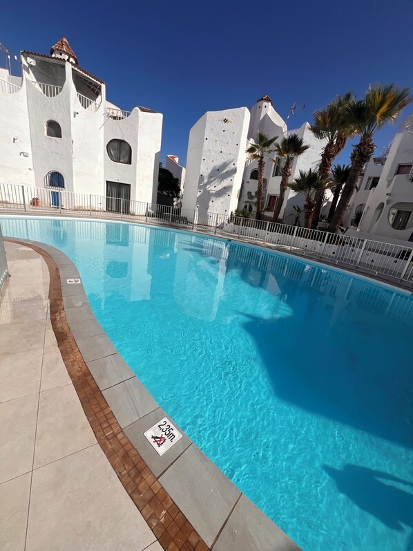 Leilighet kun for voksne med utendørsbasseng i gangavstand fra Las Américas-stranden