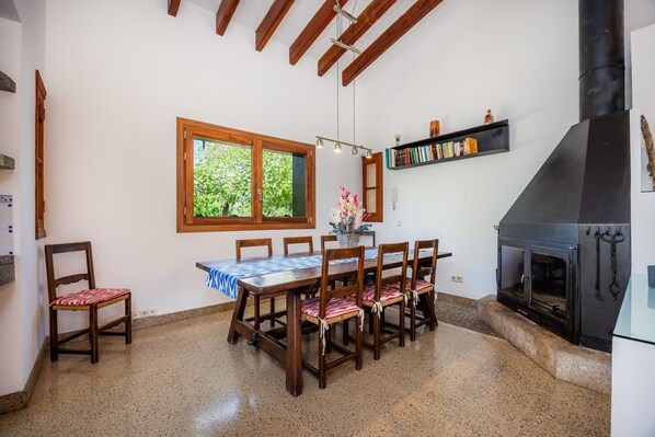 Nord på Mallorca, i nabolaget Crestatx, ligger det vakre feriehuset Es Llimoner. På 140 kvadratmeter boareal har den en koselig stue / spisestue, et veldig godt utstyrt kjøkken, 3 soverom (ett med 2 enkeltsenger og 2 med en queen size seng) og et bad og tilbyr dermed plass til 4 voksne og 2 barn (opp til 12 år). Fasiliteter inkluderer Wi-Fi, klimaanlegg, satellitt-TV, barneseng og barnestol. Det absolutte høydepunktet er det 24,5 m² store utendørsbassenget, som er omgitt av en plen. På dette er koselige solsenger og middelhavsplanter - her vil du oppleve mallorkansk teft på nært hold! Tilbered deilige måltider i det flotte grillområdet, slapp av under de skyggelagte markiser og parasoller eller avrund de milde sommerkveldene med et glass fyldig vin. Kjøpesentre, restauranter, barer og kafeer ligger henholdsvis 4 km og 7 minutters kjøretur, mens den nærmeste stranden, Playa de Alcudia, ligger 11,8 km eller en 14-minutters kjøretur fra eiendommen. Lytt til lyden av bølgene når du går langs stranden og glem hverdagens bryr seg. Parkering er tilgjengelig på gaten. Sengetøy og håndklær er inkludert i prisen. Lisensnummer: ETVPL / 12915, Navn: Es Llimoner - Elektrisitet koster 5,00 € per dag - EcoTax koster 2,20 € per person per dag