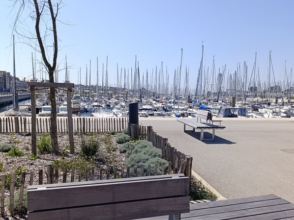 Large 63m² duplex apartment with views of Port du Crouesty from all rooms.