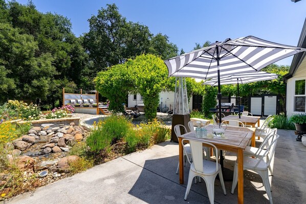 • Outdoor dining for 12 + heater