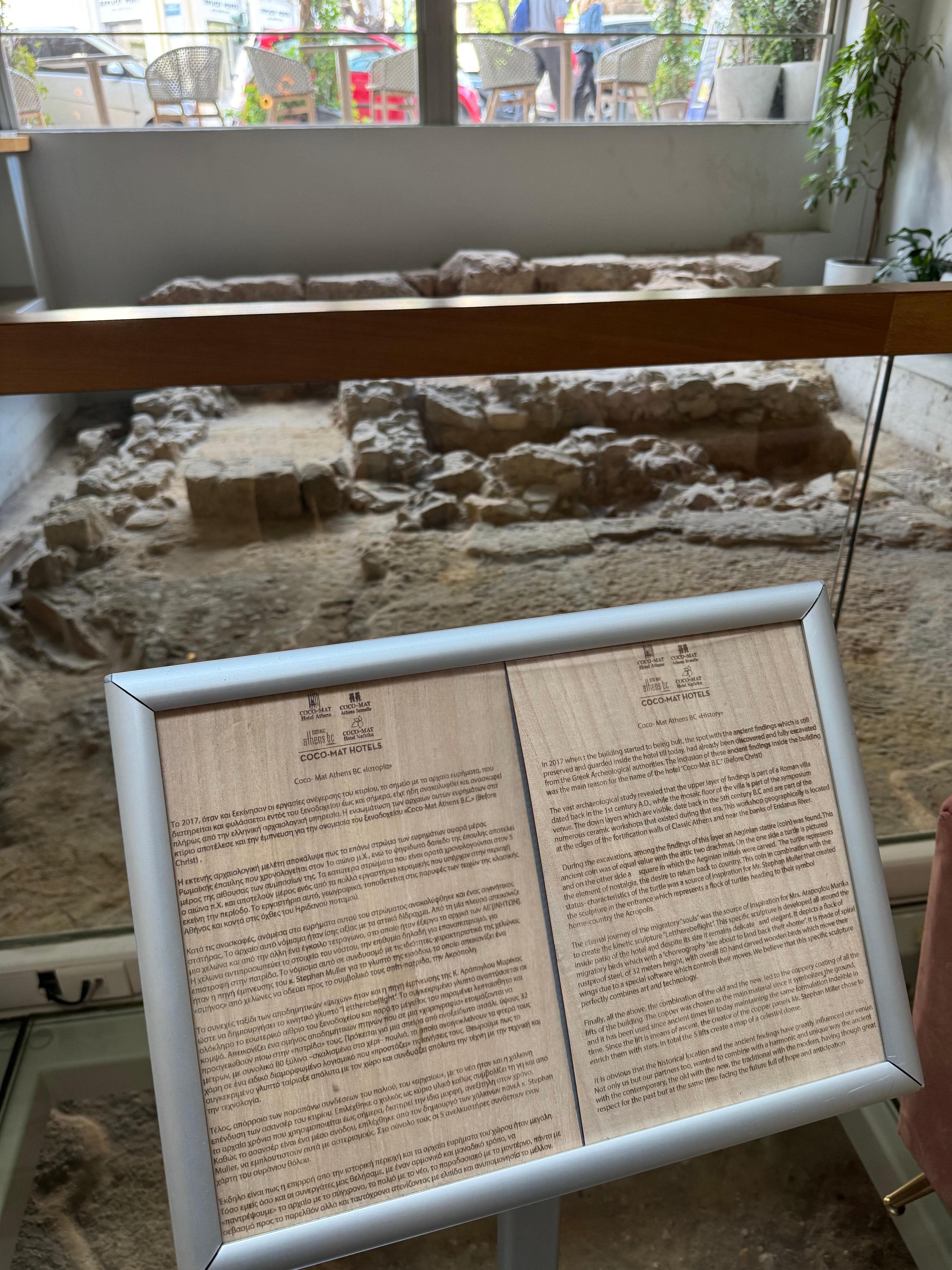 We stayed at this hotel for 3 nights in late November 2024. The first thing we noticed was the huge revolving doors that they opened for you when you arrived. The hotel is quite new, it was built in 2017. The lobby is incredibly nice with its own archaeological excavation site in the middle of the lobby. We were given a little bag with 3 x water, 1 juice and a coke with us in the room. We stayed on the 9th floor with a great view of the Acropolis, and the view, impressive. The room was large and clean and we had everything we needed in this room; air conditioning, coffee machine, kettle, fridge, tv, bathrobes, sewing kit, toothbrushes, toothpaste, razor tv ++. The service was very good, incredibly nice staff who were happy to inform you about the history of the hotel. The hotel is very centrally located, within easy walking distance of the Acropolis and the rest of the city center. We can highly recommend this, we would love to go back here