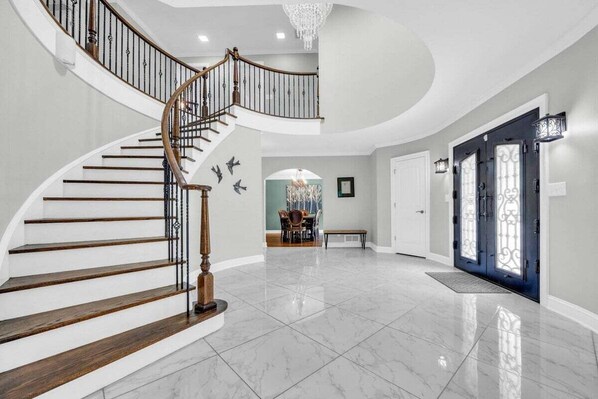 The main floor features a large kitchen, 2 half bathrooms, a TV/Living Room, Dining Room, a second TV/Living Room, and a large Master bedroom.
