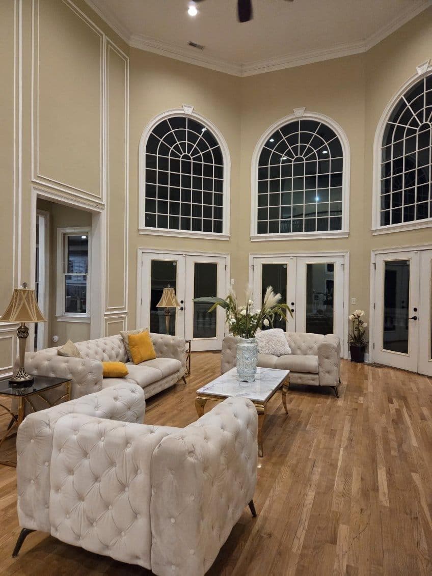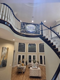 Host was extremely welcoming and met us on site the first day to show us around. We had ample space to conduct our retreat training and we will most likely use the space again in the future if it's available. We did have to order extra paper towels and toilet paper (but we later found out that a previous guest hid all the toilet paper in one bathroom under the sink). The cleanliness was tolerable. It wasn't horribly dirty but it wasn't squeaky clean either. We did have issues with how black our socks were after walking on the wood floors. But we had not problem mopping to fix this. We didn't go in and out, we stayed inside so it wasn't an issue of tracking in dirt (it's cold outside so we had everything delivered instead of leaving the premises). This is minor stuff. We had a slight issue with the resolution in the theatre room, its a projector and all the table lamps were essentially decorative and not there for actual light. I just know to bring additional light sources when I stay again! Thanks for the amazing space.