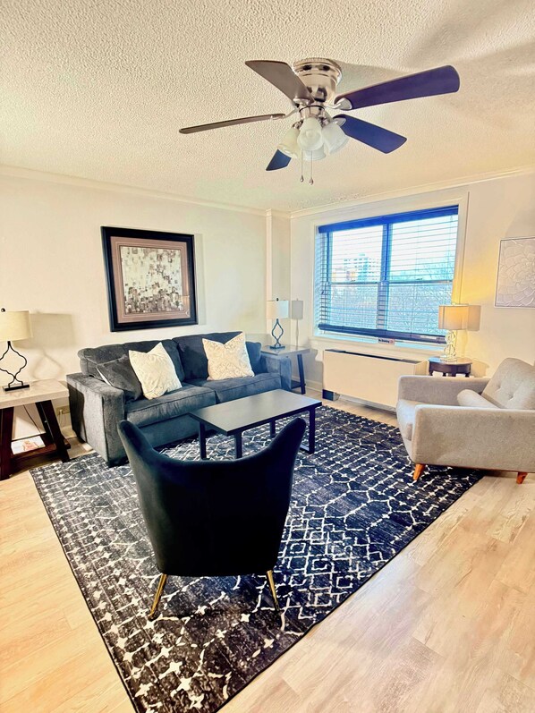 Peachtree Towers Condos are perfect for business travelers, weekend adventurers, families, or a couples get away and this condo has a flexible layout with two double beds in the spacious bedroom, a sleeper sofa in the living area and an air mattress for additional guests. The bathroom features beautiful upgrades with new fittings and a large walk-in shower. You’ll enjoy a peaceful nights sleep when you choose this luxurious condo for your stay in Atlanta.