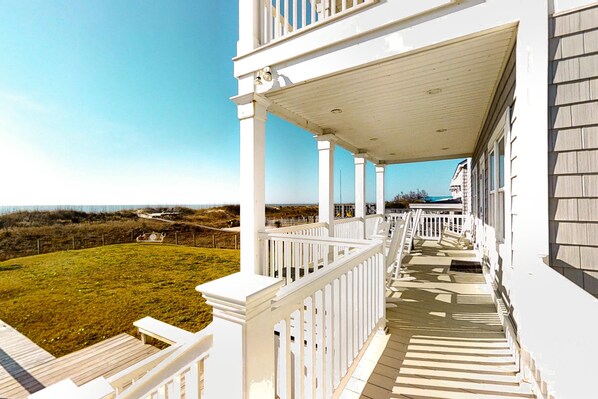 Kellum Cottage: Spacious oceanfront home, large deck, beach access