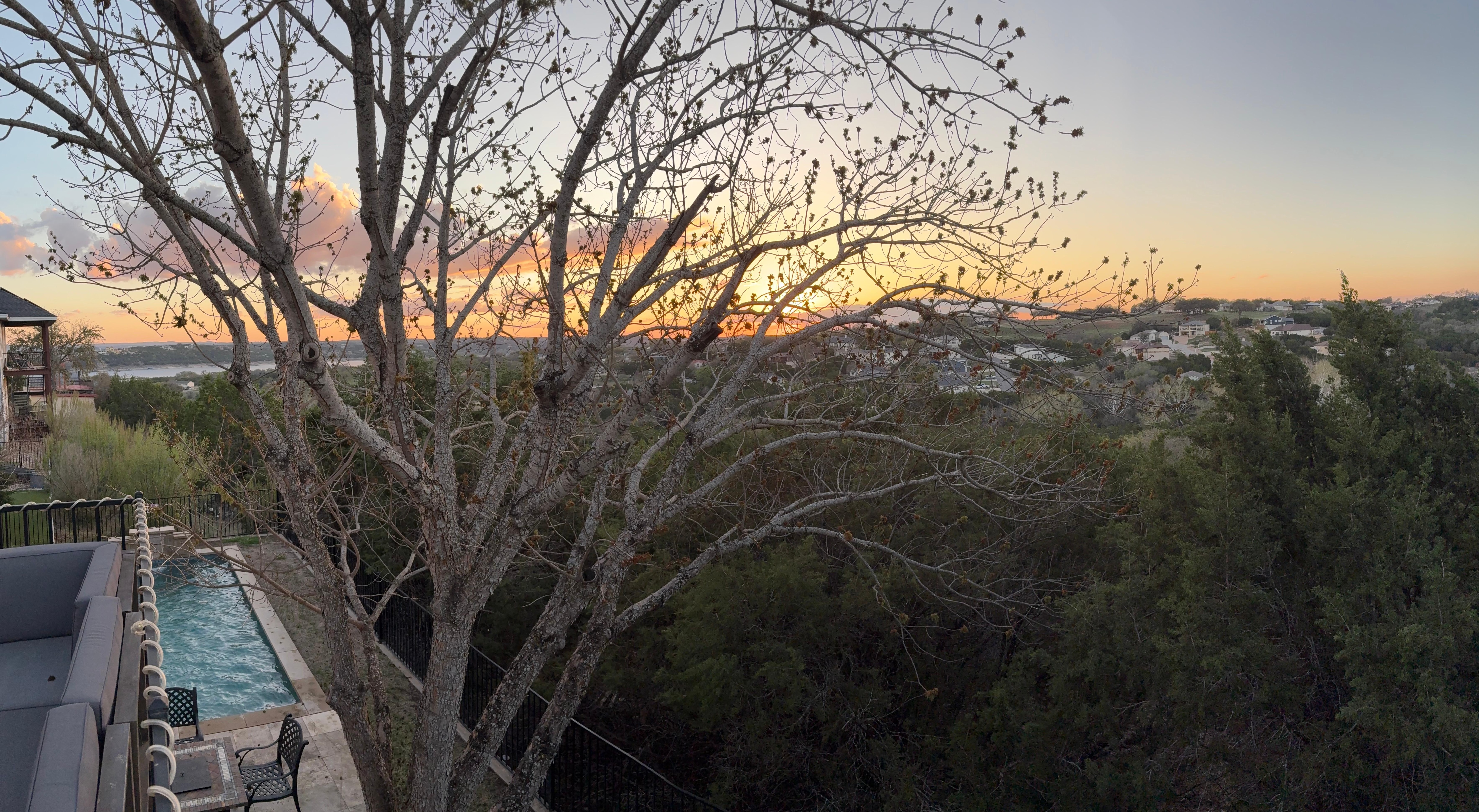 LANGE VISNINGER FRA ALLE NIVÅER! Fantastisk tilpasset hjem som sitter høyt på en høyde med fantastisk utsikt over Lake Travis og det omkringliggende Hill Country. Vakker travertin i oppholdsrom og kjøkken, gulv til tak-vinduer, svevende tak, peis åpent til kjøkken med frokostbar og stor midtøy. Våkn mot utsikten fra mesteren, bad med tilpasset fliser, dusjkabinett, stort skap. 5 private gjesterom, 3. 5 bad, 2 separate oppholdsrom, soveplass til 14! Elegant en av en slags finish-med høye tak, glassvegger og en fantastisk åpen planløsning. Utvendig levende er fantastisk, med to nivåer for underholdning, et glitrende basseng og vakker utsikt over innsjøen og åssiden.