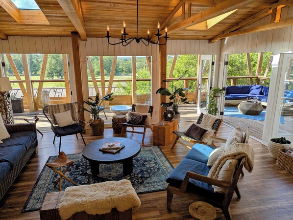 Det første du vil se når du går inn i ditt boareal er en stor vikle rundt dekk og dramatisk bildevindu som gir ekspansiv utsikt over førnevnte AMAZING Zilker Park. (Du kan se folk spille i parken og se bakporten til Barton Springs Pool fra dekk)
