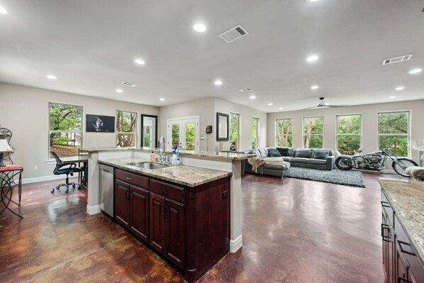 Welcome to our charming two-story hideaway nestled just minutes away from the Lake Travis and Lake Austin junction. Sleeping 8 guests, our spacious retreat offers the perfect blend of comfort and convenience. The front yard boasts a serene creek, adding to the tranquil ambiance of the surroundings. Whether you`re seeking adventure on the lake or a peaceful retreat in nature, our home promises an unforgettable stay.