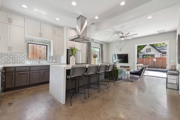 Living Room, Kitchen, Dining Area, Bathroom