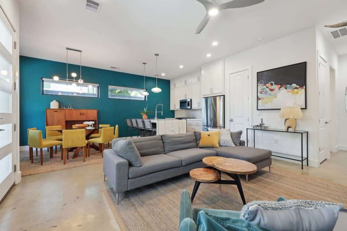 This renovated home in East Austin can fit up to 19 guests with its 10 bedroom, 3 bathroom, and a short drive to downtown Austin. With its ample amenities, including a private pool, this home is the perfect place to relax after a day of exploring Austin. The professionally designed spaces offer open-concept layouts and kitchen & dining spaces perfect for entertaining.