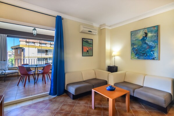 Gjesterom med airconditioning på denne leiligheten har vaskemaskin/tørketrommel og strykejern/-brett.