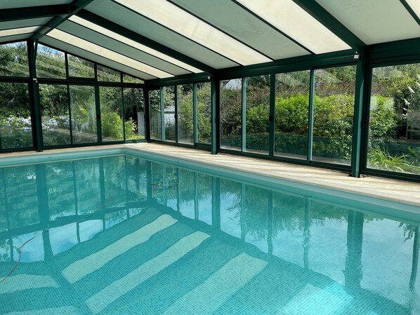 Har Vacation home 10 pers. with heated and covered swimming pool Hauts de Locmiquel basseng?