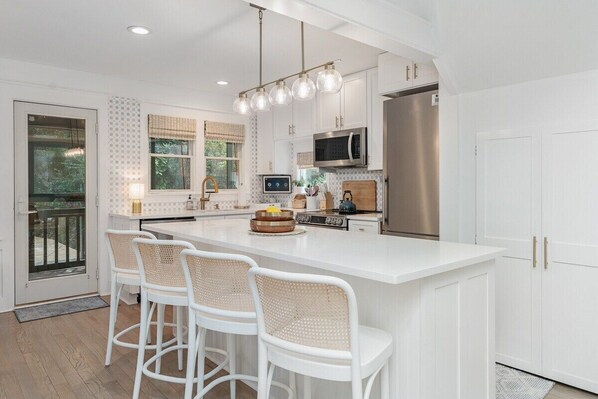 🏡 The Property This professionally managed home comfortably sleeps up to 8 guests, with three private bedroom suites and beautifully appointed gathering spaces: Main House: Two bedrooms, each with a private full bathroom. One is a serene primary suite (1 King), and the other is a well-appointed bunk room (4 Twins) with curated, kid-friendly touches designed to delight younger guests. Crofter Suite: A detached third bedroom (2 Full) above the garage with its own bathroom, ideal for guests seeking privacy, grandparents, or teens. Please Note: This home is NOT pet-friendly and during high season, it rents Sunday to Sunday.