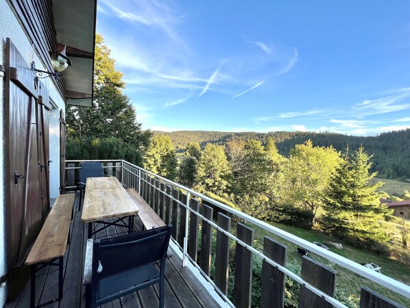 Comme le soleil était au rdv, nous étions souvent sur la terrasse. Son entretien est clairement laissé à l'abandon. Plusieurs planches en bois de la rambarde cassées et ébréchées. Des vis pointues qui ressortent ici et là.