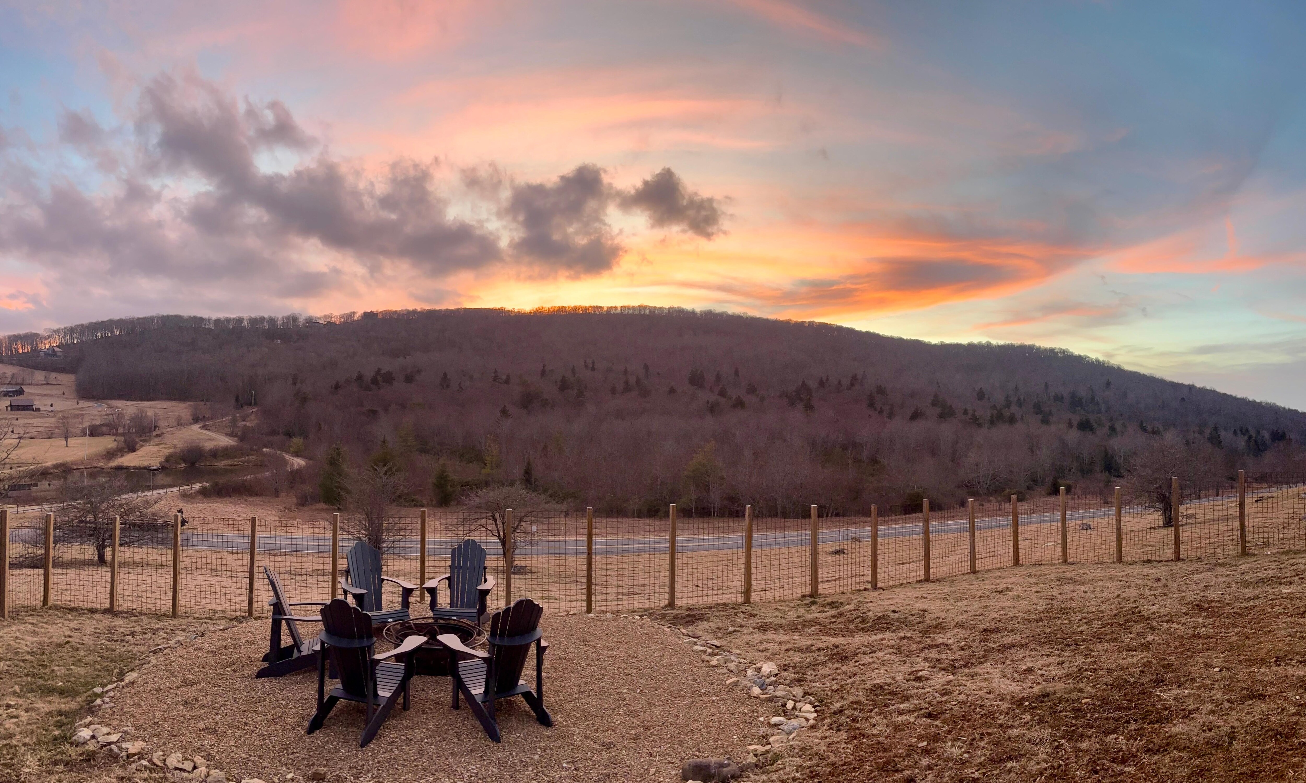 Welcome to Modern Mountain Retreat! Nestled atop a peaceful hill, our new cabin offers stunning long-range views, high-end finishes, and open design. Serene tree and pond views, three plush king bedrooms, a spacious bunk room for six. Wi-Fi, smart TVs, and a fully equipped kitchen and outdoor grill. Soak in the hot tub, gather around the fire pit, and let kids play in the fenced yard. Game room -6 twin bunkbeds, movie projector. skiing, rafting, biking, fishing, and golf. Pet-friendly w request