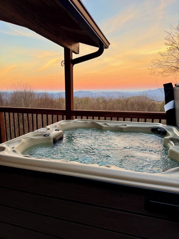* An intimate 2-person hot tub with lights and jets, perfect for unwinding after a day of exploring.