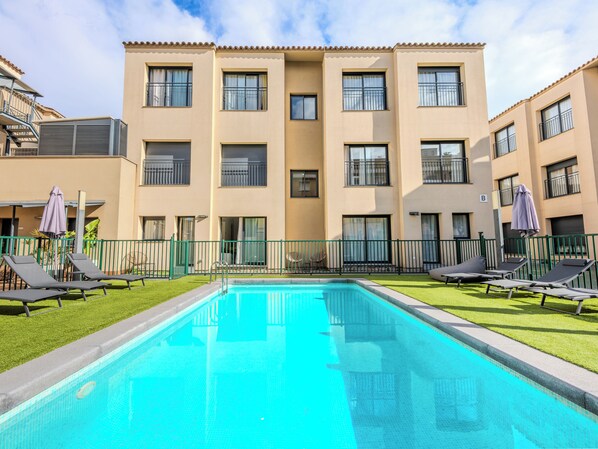 Fritidsfasiliteter ved dette leilighetshotellet inkluderer et sesongbasert utendørs basseng.