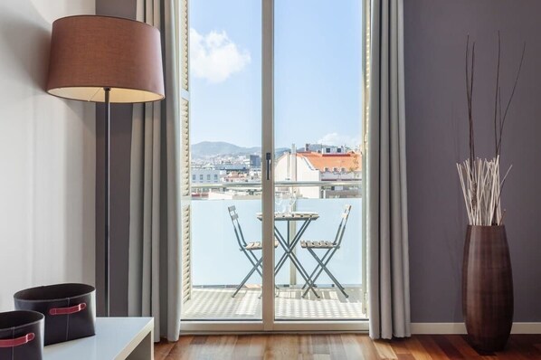 - Sunny balcony with views over an interior patio ☀️