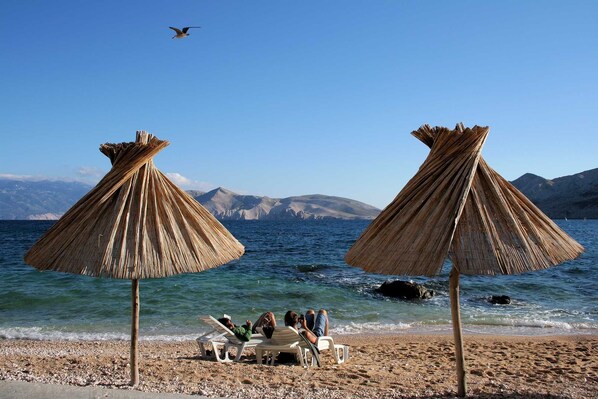 Many activities and entertainments await visitors there: restaurants and cafes are present all around it, and pedal boats, windsurf boards, beach umbrellas, and sun loungers are available for rent.Besides Vela Plaža, Baška is also home to more than thirty beaches; the most famous of these are the ones near the bays of Vela Luka and Mala Luka, the FKK beach near the Bunculuka camp, and the beaches of Konjska, Vrženica, Jablanovo, Storišće, and Dubna.