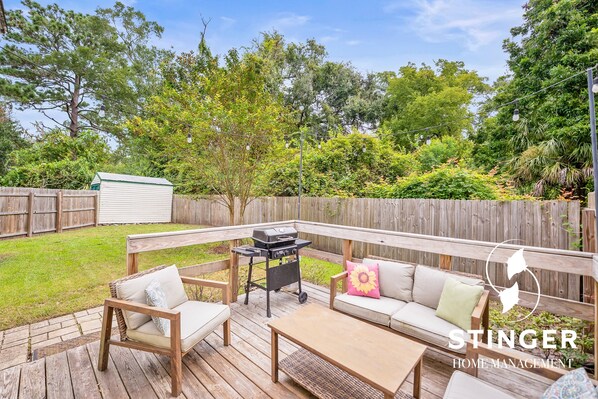 Bringing a boat or jet ski for a fishing tournament or beach trip? No problem — there’s room for trailers here. When you’re home, kick back on the spacious deck while kids or pups enjoy the yard. We’re pet-friendly too! $75 pet fee with an additional $25 for an extra pet.