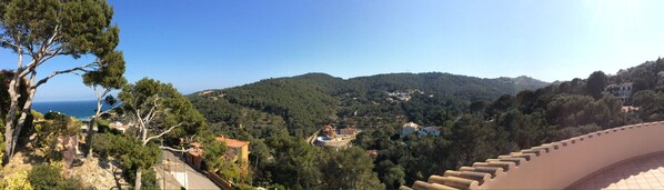 The house has a surface area of 140 m2 which is divided into two floors. On the ground floor there is an open kitchen equipped with dishwasher, a large living-dining room with fireplace and direct access to the covered outdoor terrace with views to the swimming pool. On the main floor there is also a guest toilet. A spiral staircase leads to the upper floor with four double bedrooms and three bathrooms (two with shower and one with bathtub).